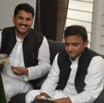 சமாஜ்வாதி கட்சியின் தலைவர் மரியாதைக்குரிய அகிலேஷ் யாதவ் அவர்கள் வெளியிட அவரது நண்பர் காமராஜ் ஜெயின் பெற்றுக் கொள்கிறார்.