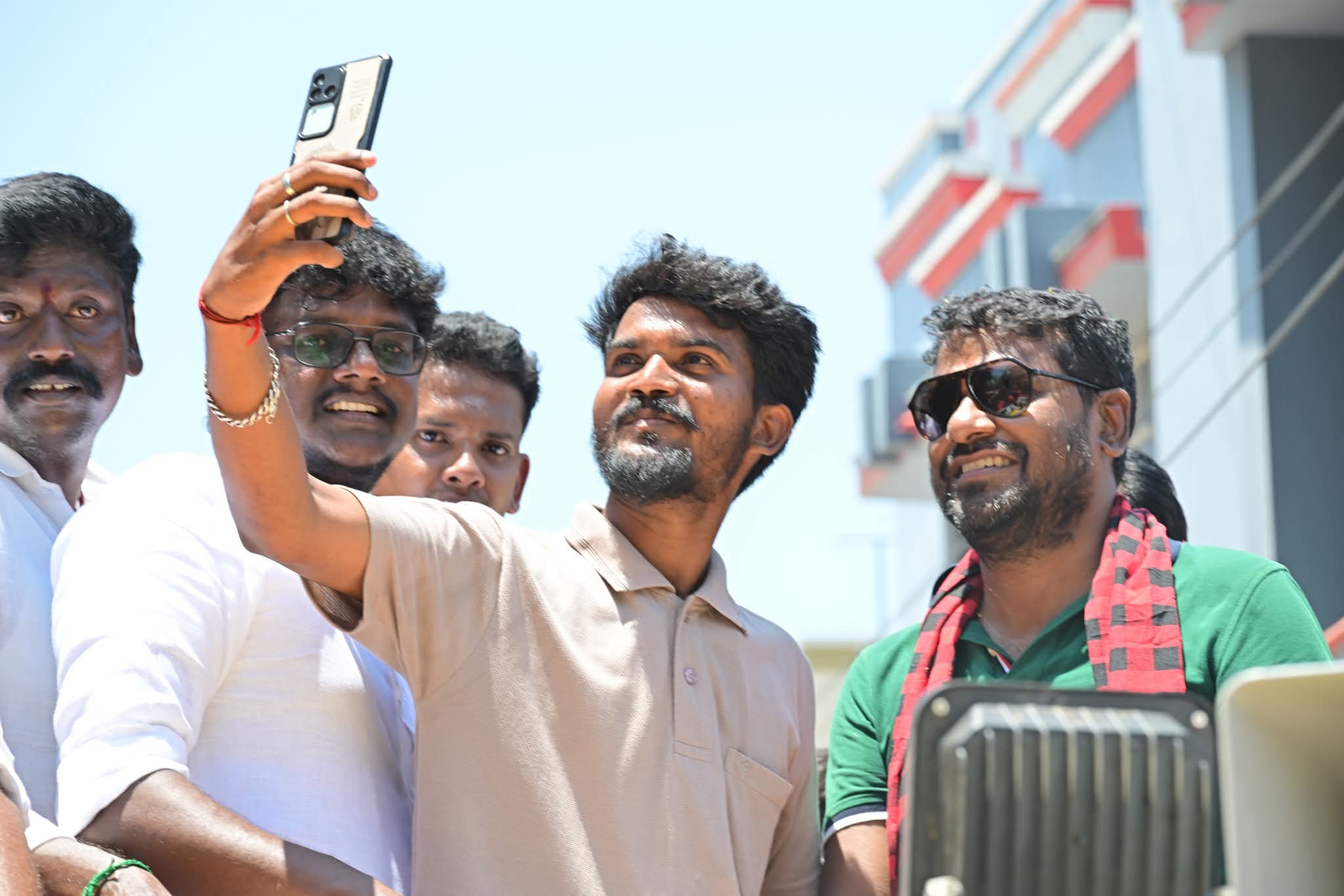 இளைஞர்கள் போட்டி போட்டுக்கொண்டு வேட்பாளருடன் செல்ஃபி எடுத்து மகிழ்ந்தனர்.