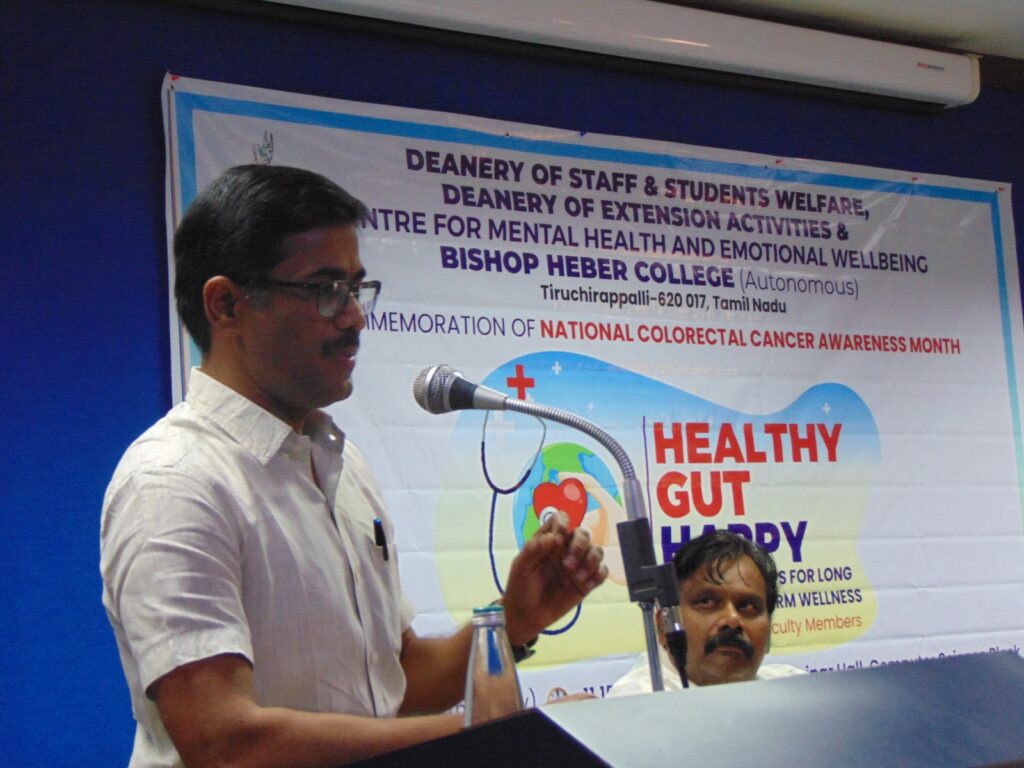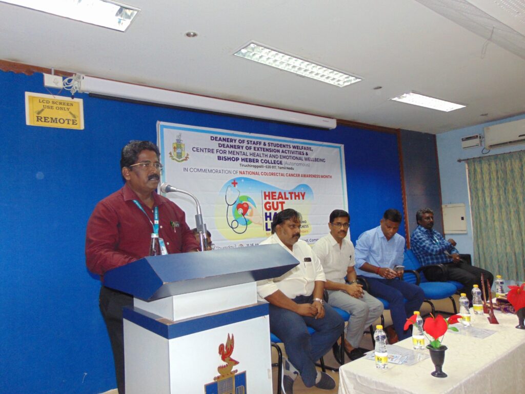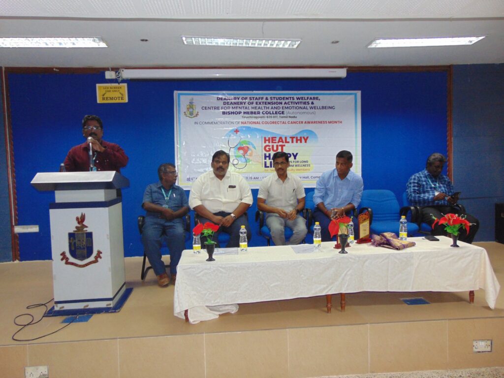 திருச்சி பிஷப் ஹீபர் கல்லூரி பணியாளர்கள் மற்றும் மாணவர்கள் நலத்துறை, விரிவாக நடவடிக்கைகள் துறை மற்றும் உணர்ச்சி நல்வாழ்வுக்கான மையம் ஆகியவை இணைந்து நடத்திய *ஆரோக்கியமான குடல் மகிழ்ச்சியான வாழ்க்கை* என்ற தலைப்பில் விழிப்புணர்வு நிகழ்ச்சி நடைபெற்றது