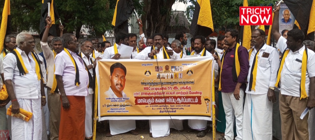 திருச்சி மாநகர மாவட்டம் வீரபத்திரர் ராஜகுல பேரவை சார்பாக மாபெரும் கவனயீர்ப்பு ஆர்ப்பாட்டமானது மாவட்ட ஆட்சியர் அலுவலகம் அருகே நடைபெற்றது.