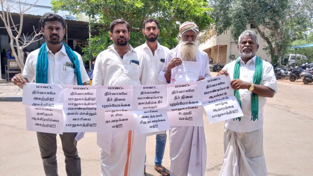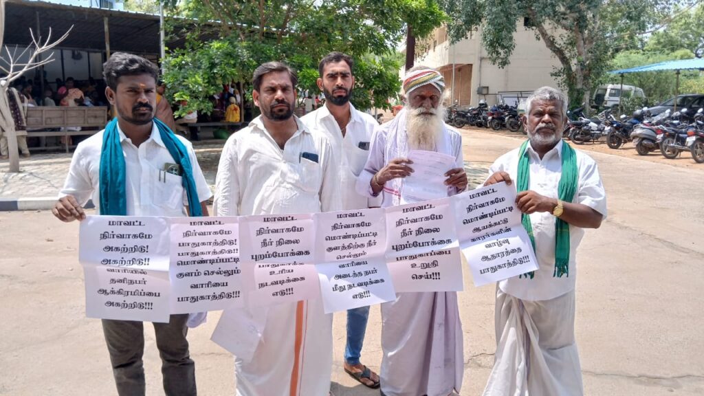 எனவே நடவடிக்கை எடுக்காத அதிகாரிகள் மீது உரிய நடவடிக்கை எடுத்தும் இடத்தை பார்வையை நேரில் பார்வையிட்டு நீர்நிலை ஆக்கிரமிப்புகளை அகற்றி ஆக்கிரமிப்பாளர்கள் மீது உரிய நடவடிக்கை எடுக்க வேண்டும் நீர்நிலை இடங்களை பாதுகாத்தும் கழிவுநீர் வாய்க்கால் அடைப்பை அகற்றி விவசாயிகளின் வாழ்வாதாரத்தையும் பட்டியல் சமுதாய மக்களின் வீடுகளையும் பொதுமக்களையும் காப்பாற்ற வழிவகை செய்ய வேண்டும் என தெரிவித்தார்.
