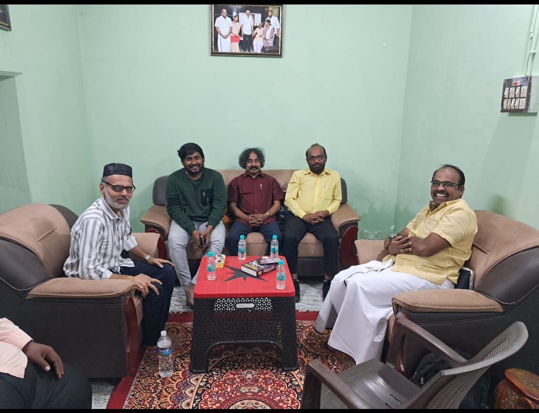 பரப்புரையைத் தொடங்கி வைத்த திமுக கலை இலக்கிய பேரவை மாநில துணை செயலாளர் எழில்மாறன் நேரில் சந்தித்து வாழ்த்துகளைத் தெரிவித்தார்.