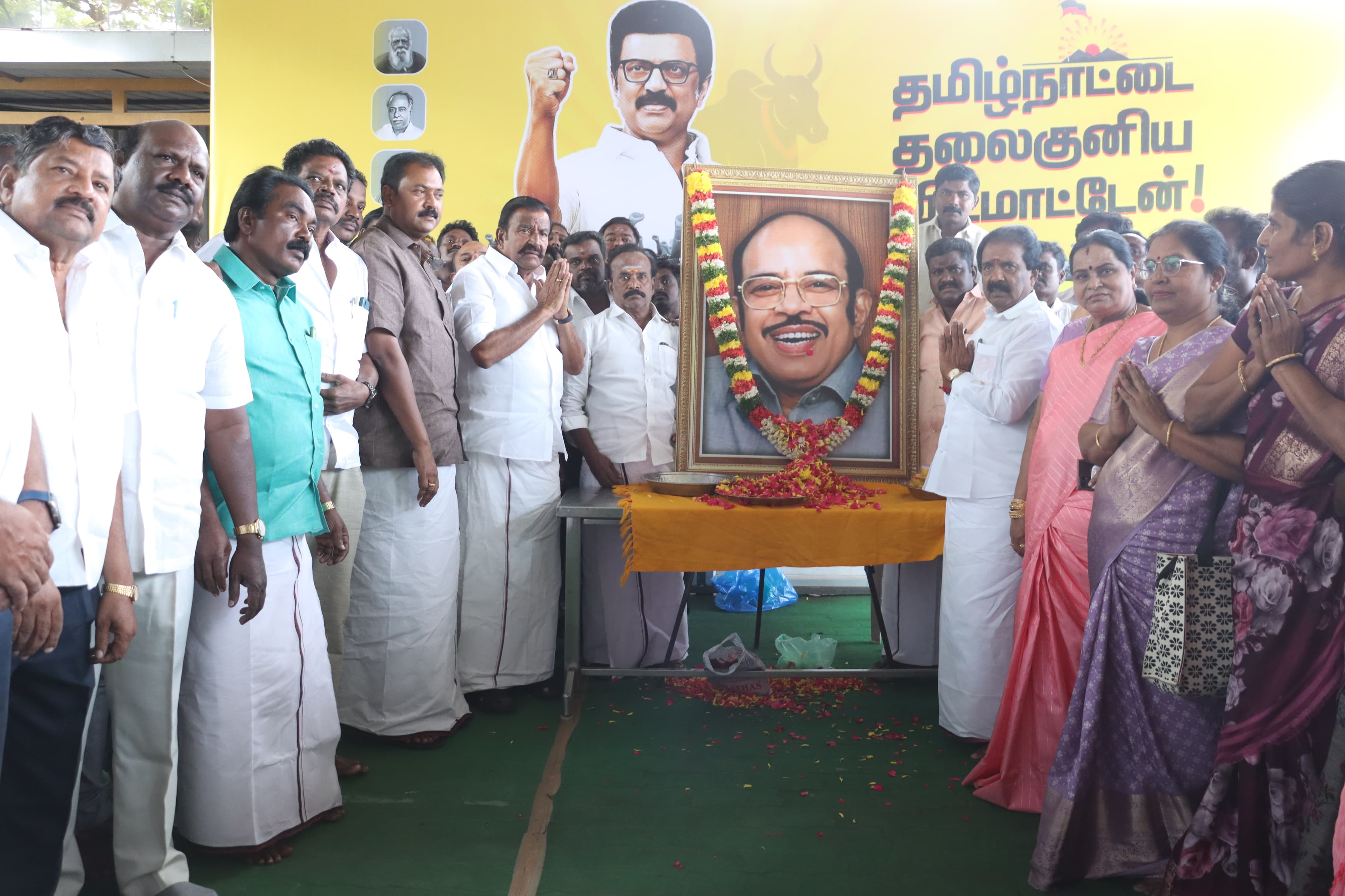 இந்த நிகழ்வில் மத்திய மாவட்ட செயலாளர் வைரமணி, மேயர் அன்பழகன், சட்டமன்ற உறுப்பினர் ஸ்டாலின் குமார் உள்ளிட்ட ஏராளமான திமுகவினர் முரசொலி மாறனின் திருவுருவப் படத்திற்கு மலர் தூவி மரியாதை செலுத்தினர்.