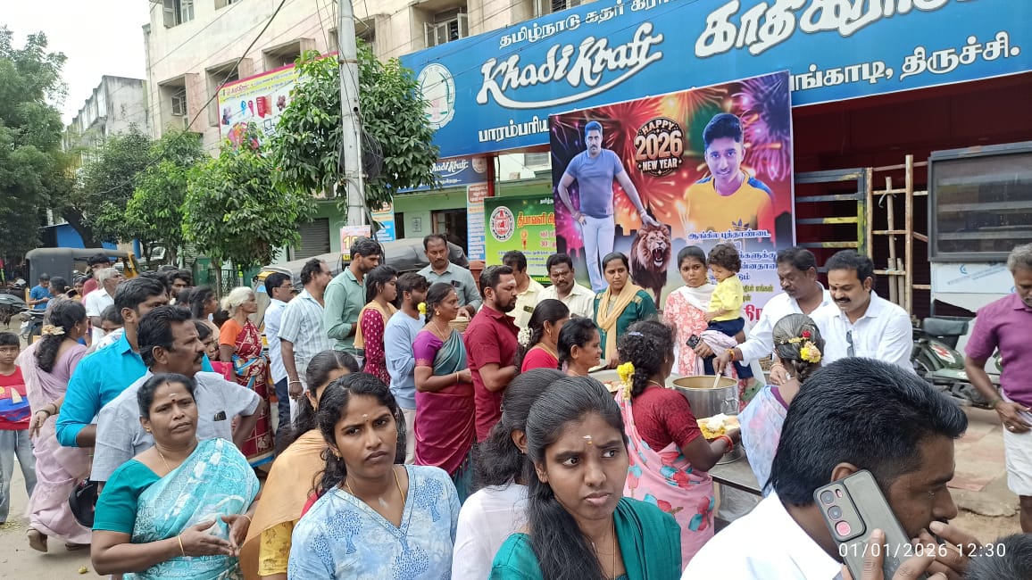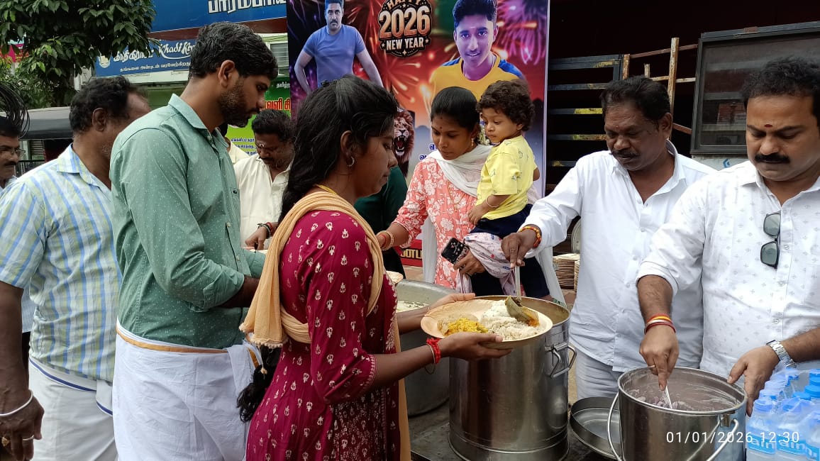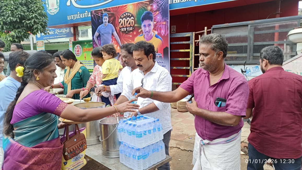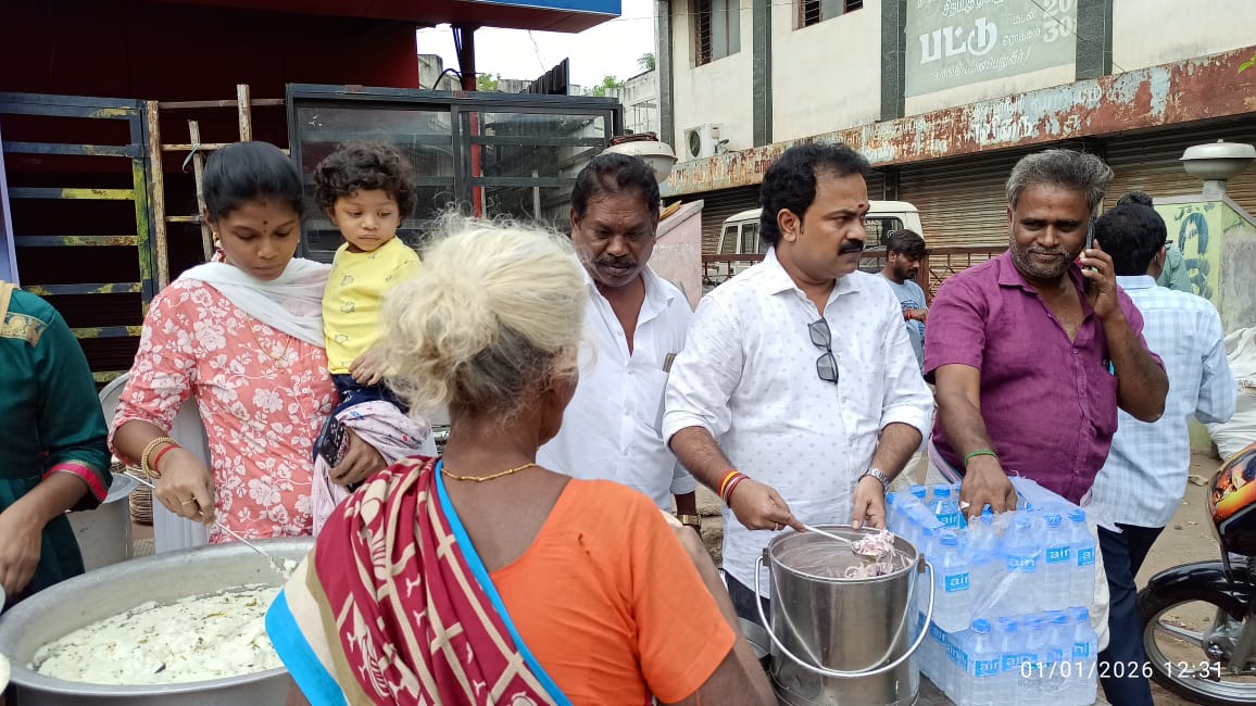 *புத்தாண்டை முன்னிட்டு மலேசிய தொழிலதிபர் டத்தோ சந்திரன் சார்பாக திருச்சி வழிவிடு முருகன் கோவில் அருகே 500 பேருக்கு அன்னதானம் வழங்கப்பட்டது*