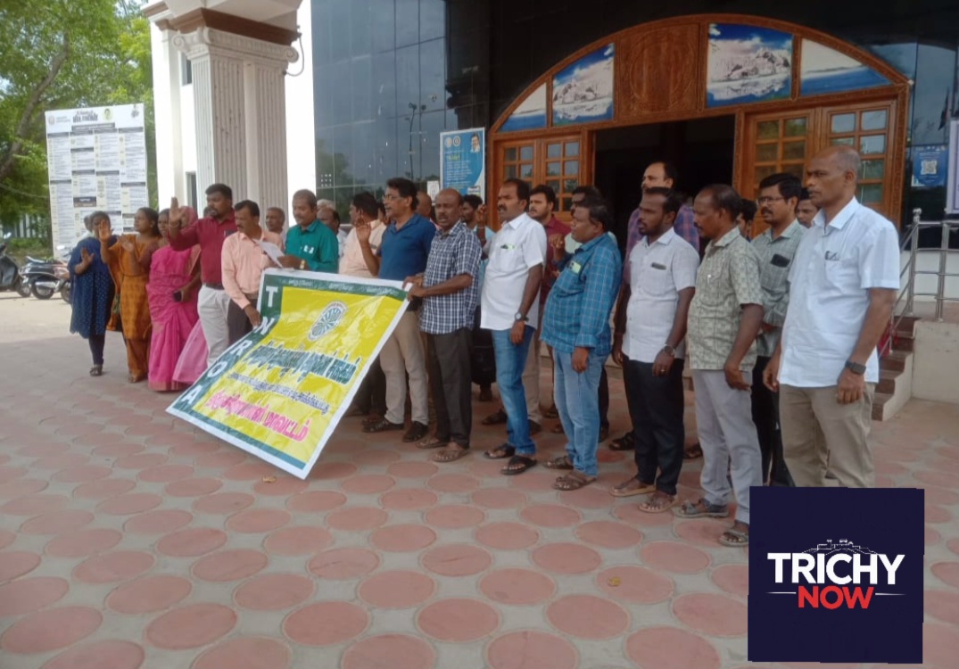 திருச்சியில் வருவாய்த்துறை அலுவலர் சங்கத்தினர் தொடர் 48 மணி வேலை நிறுத்த போராட்டத்தில் ஈடுபட்டுள்ளனர்