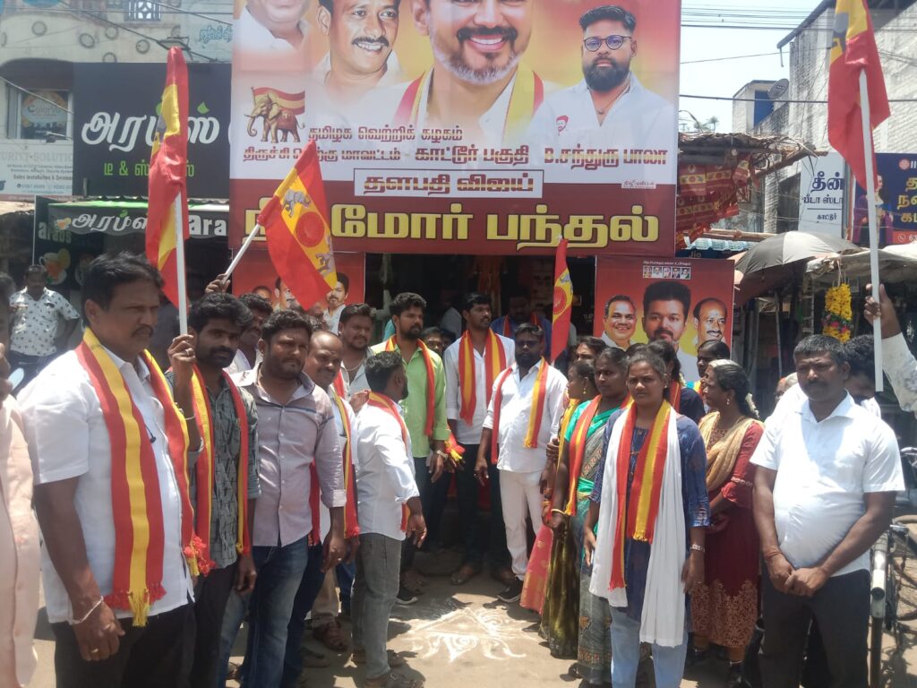 திருச்சி காட்டூரில் தமிழக வெற்றி கழகம் சார்பில் நீர் மோர் பந்தல் திறப்பு..!