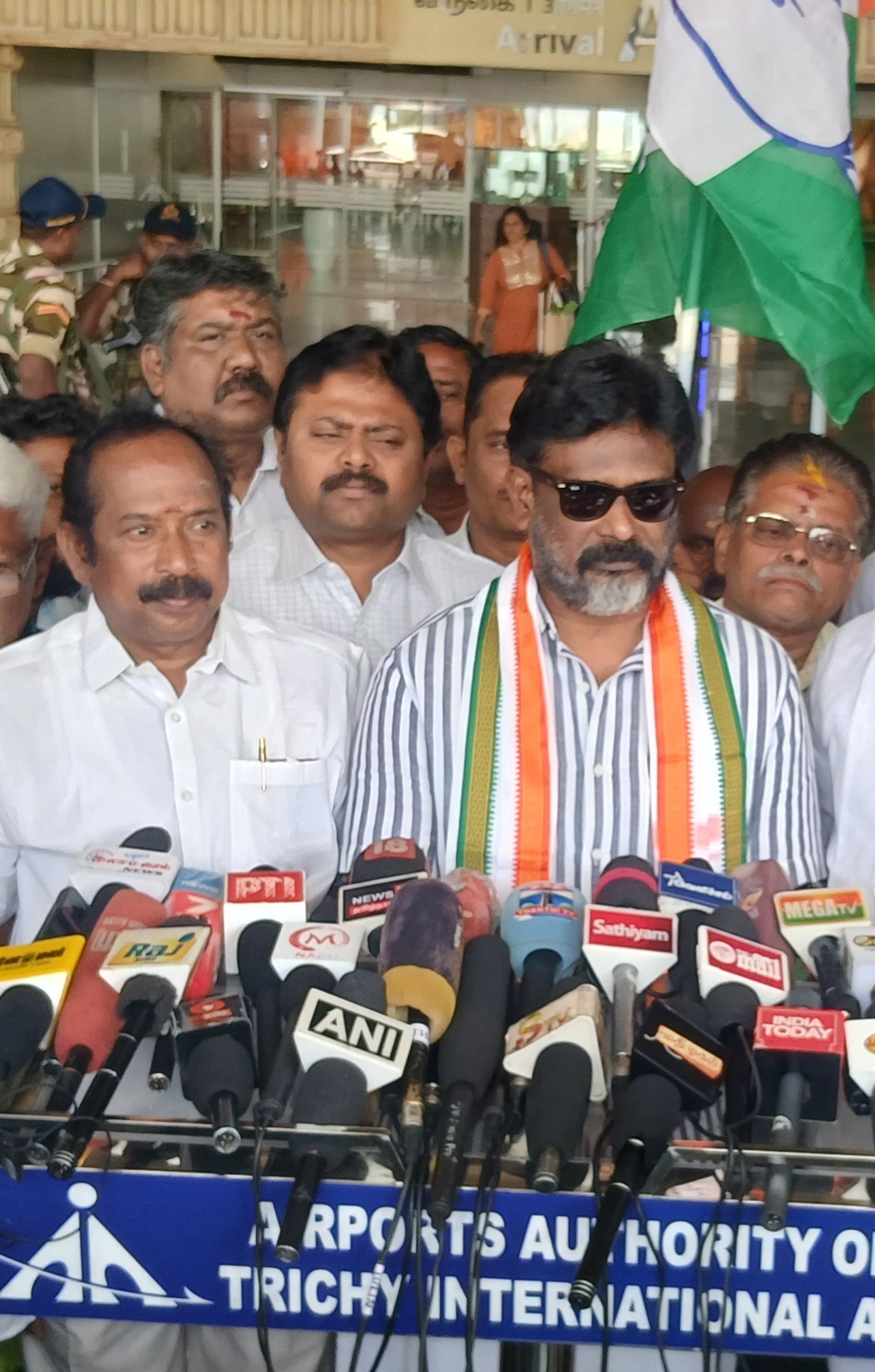 திருச்சி விமான நிலையத்தில் செய்தியாளர்களிடம் பேசிய கிறிஸ்டோபர் திலக், தனது அரசியல் பயணம் குறித்தும் கட்சியின் தலைமைக்கும் நன்றிகளைத் தெரிவித்துக் கொண்டார்.